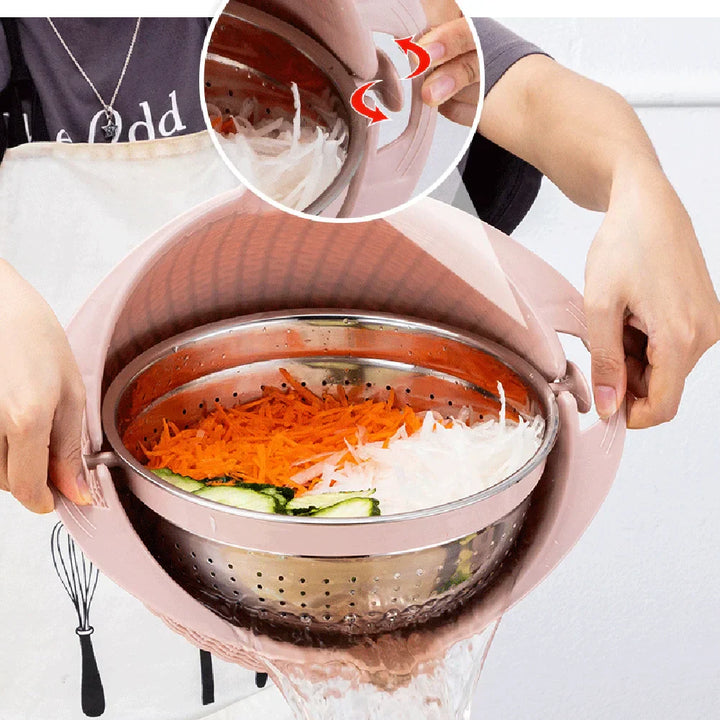 Wir stellen vor: Das Multifunktionale Dreh-Sieb, ein vielseitiges 4-in-1-Küchengerät, das Ihren Zubereitungsprozess optimiert. Dieses innovative Gerät ermöglicht es Ihnen, mit nur einer einfachen Drehung zu waschen, schneiden, reiben und abtropfen, wodurch das Kochen schneller und effizienter wird.
